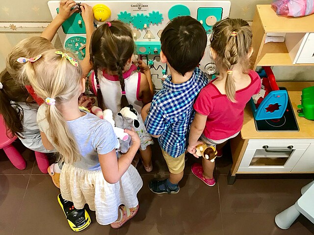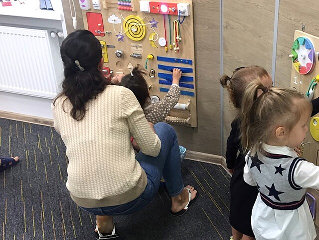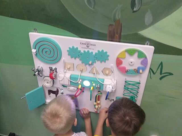 Людмила, владельца монтессори садика в Санкт-Петербурге. Бизиборд по индивидуальному заказу 75*60 см.