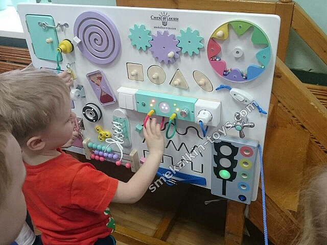 Хочу сказать вам браво за ваш профессионализм!бизиборд выполнен с любовью к детям,очень качественно,все предусмотрено,вызывает мгновенный восторг!для мальчика просто рай,мы заказывали бизиборд с доской для мела, это прекрасное совмещение и порисовать и покрутить и включить и нажать,занят и папа и сын,да и что скрывать и мне хотелось тоже все попробовать как все устроено,у вас определенно золотые руки,огромное спасибо Елене на все вопросы всегда своевременные ответы,соблюдение сроков и быстрая доставка,мы теперь ваши поклонники и обязательно закажем что нибудь с вашими новинками!спасибо,что вынесете малышам радость и делаете это ответственно и безопасно!