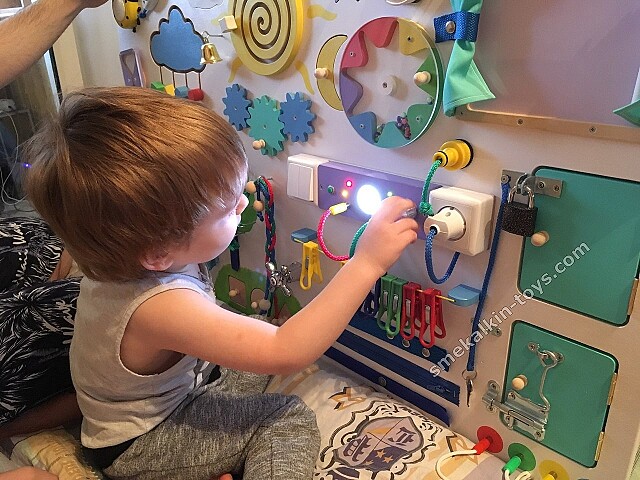 Здравствуйте. Бизиборд очень понравился, сын подолгу с ним играет. Маленькие гости на ДР тоже оценили, особенно включение и выключение света. Спасибо.